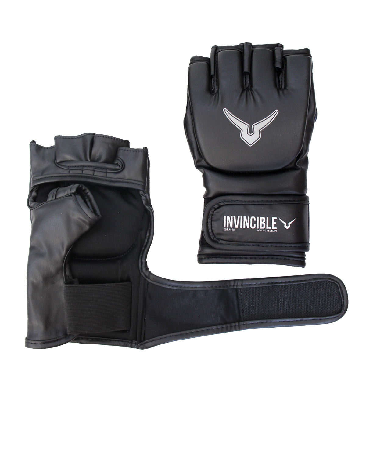 These Invincible Beginner's MMA Combat Gloves are designed for entry-level training across various combat sports and fitness routines, made from synthetic leather for basic training needs.