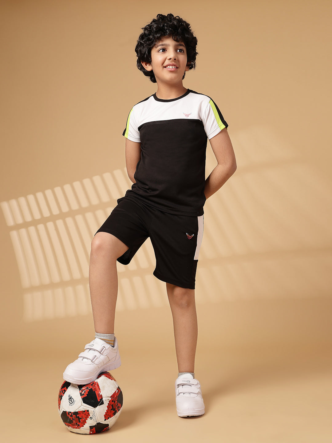 Step up your little one’s style game with the Invincible Kids Color Block Shorts, designed for a trendy and sporty vibe. Crafted from premium 100% Polyester fabric, these shorts are lightweight, breathable, and perfect for active kids. Featuring a fashionable color-block pattern, these shorts bring a pop of modern athleisure style to any outfit. With a regular fit, two side pockets for convenience, and an adjustable drawcord waistband, they provide ultimate comfort and functionality. The vibrant 3D Invincible logo adds a bold touch, making these shorts a standout choice for casual wear, sports, or playtime.