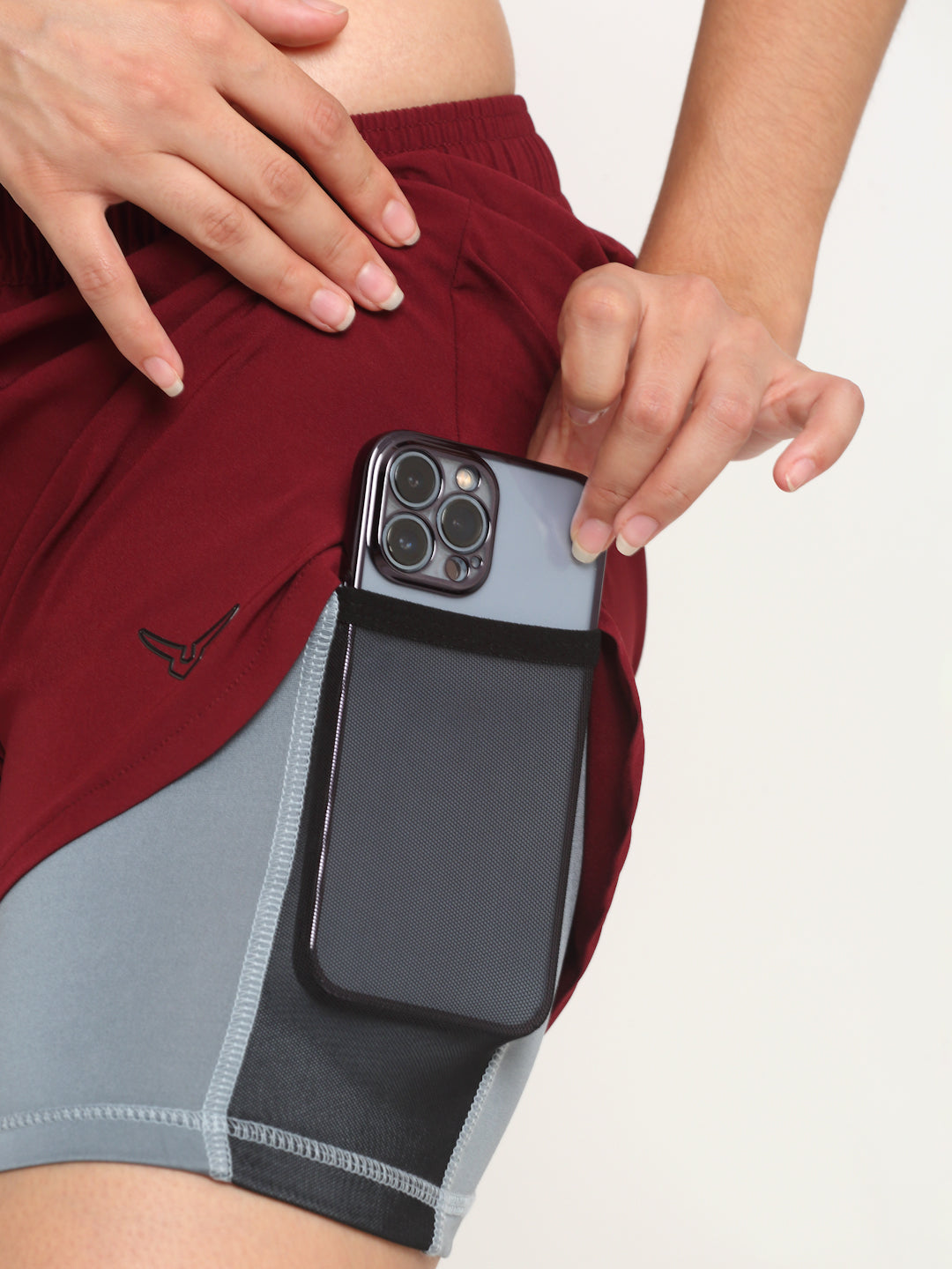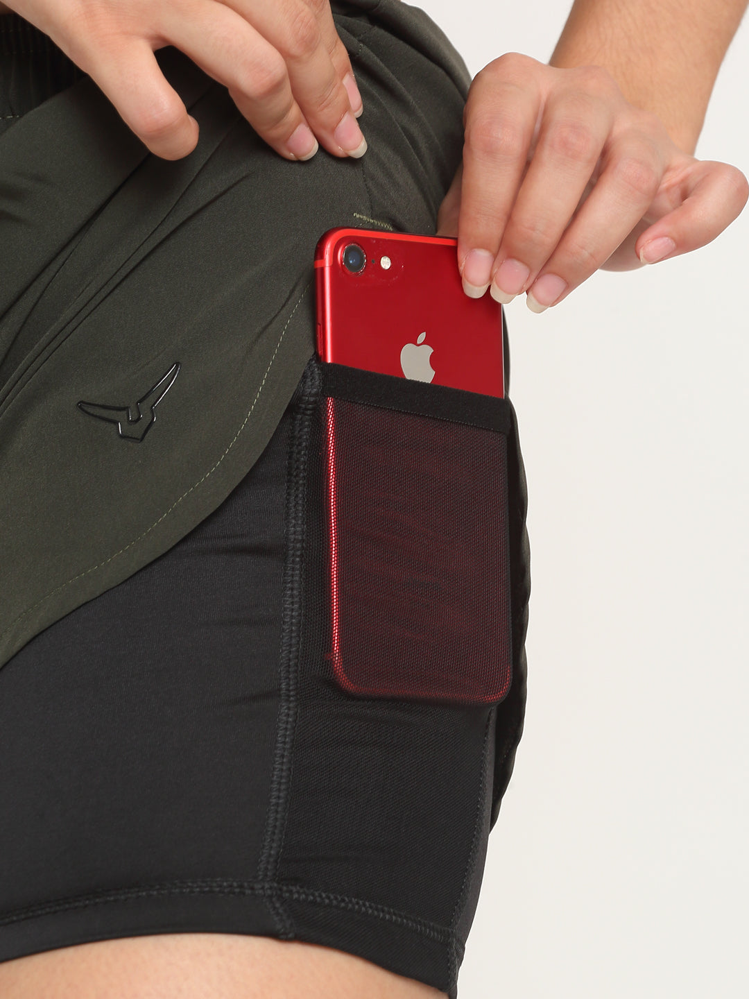 This 2 layer shorts comes with INNER TIGHT To improve blood flow keep the muscles warm. Innovate pocket to carry your phone while running, such that the phone will not bounce or fall when running or playing a sport.